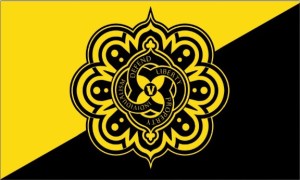 Not being a country, Agoran no longer has an official flag. However, many people (including the Libertas fleet that originates from Agoran) fly the black-and-yellow flag that represents anarchism: a free market and no government. The one depicted here (borrowed from the voluntaryist/ancap movement in the real world) is specific to the Libertas flagship, and reads: Defend Liberty, Property, Individualism.